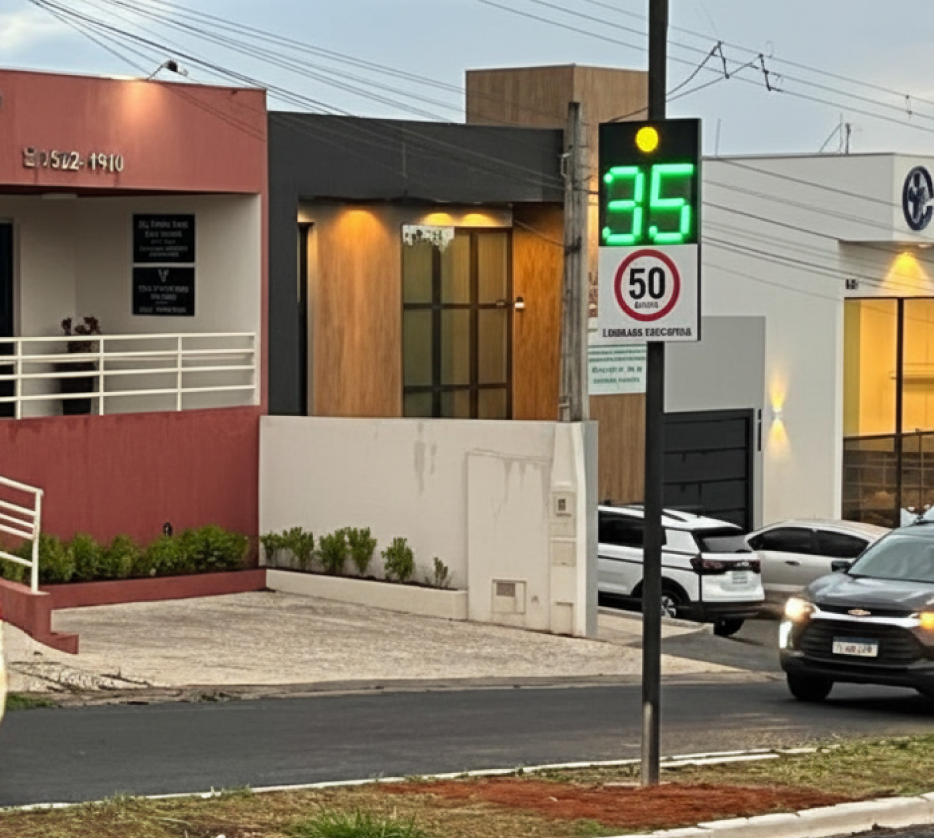 Desenvolvida para áreas de segurança como escolas, delegacias e quartéis. Exibe velocidade em tempo real e alertas de limite, contribuindo para educação no trânsito e redução de acidentes.