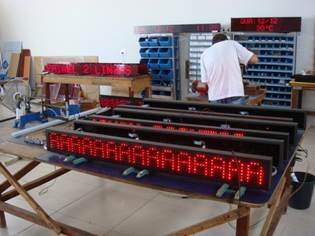 Produto totalmente customizável, com opções de uma ou múltiplas linhas, permitem exibir hora, data, temperatura e mensagens personalizadas com diversos efeitos visuais.