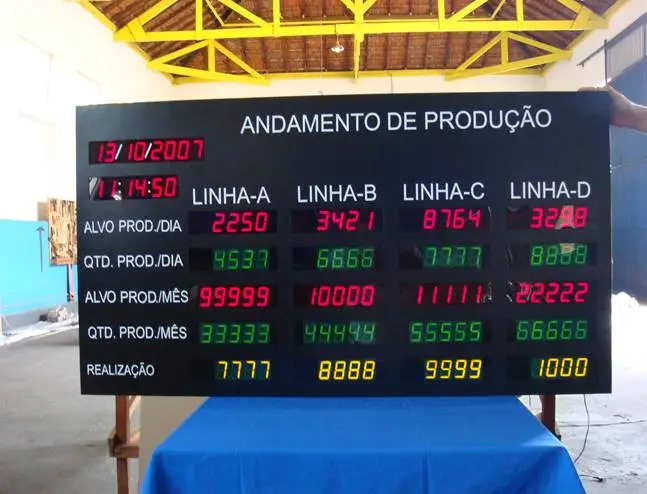 Painel Andon com relógio e jornal eletrônico opcionais